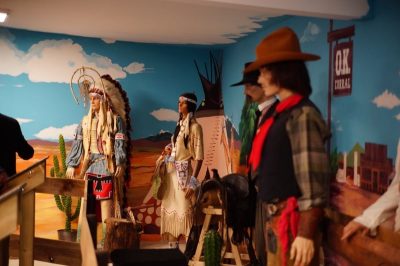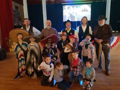 Pour 15 enfants minimum. Sur réservation, le dimanche à partir de 14h jusque 17h. Une table est garnie de cotillons, un gâteau est fait selon votre gout et au nom de votre enfant, grimage – mise en selle comprise, la mascotte de western-city apporte le gâteau, spectacle western, château gonflable et visite de l’History Hall en période hivernale un karaoké ou blinde test enfants.